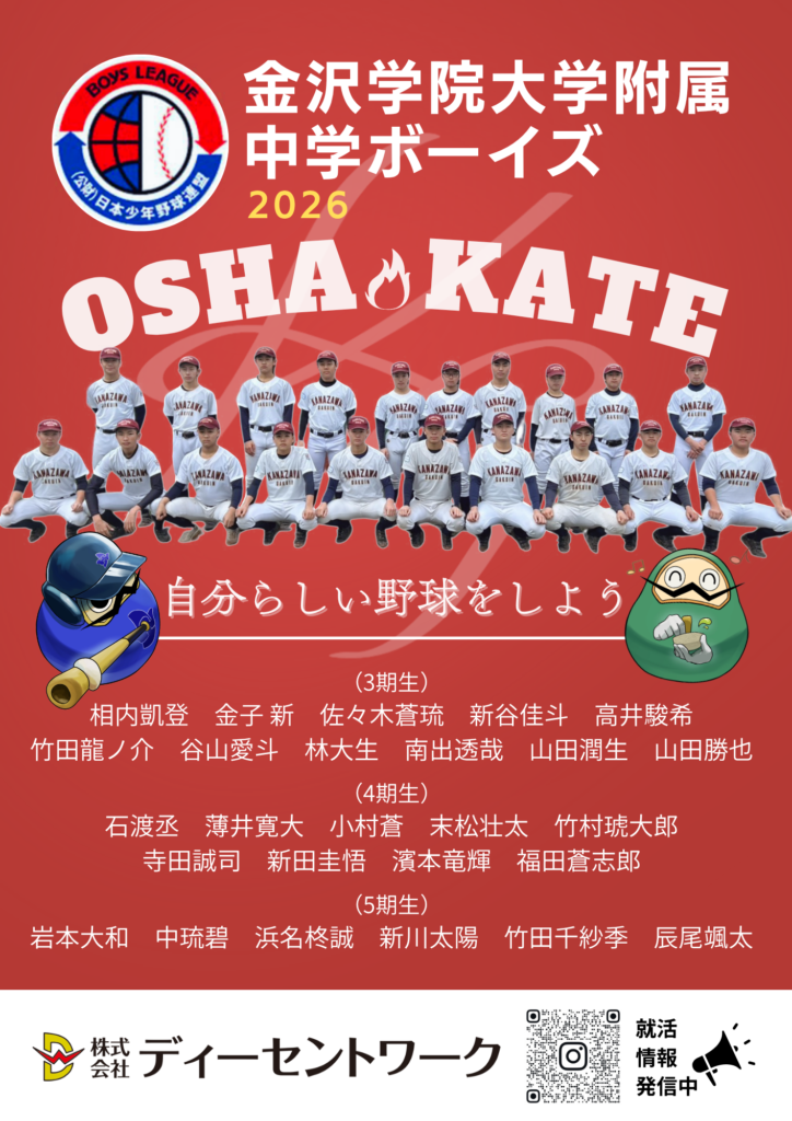 金沢学院大学附属中学ボーイズ様の大会パンフレット掲載「チーム紹介広告」を制作致しました。